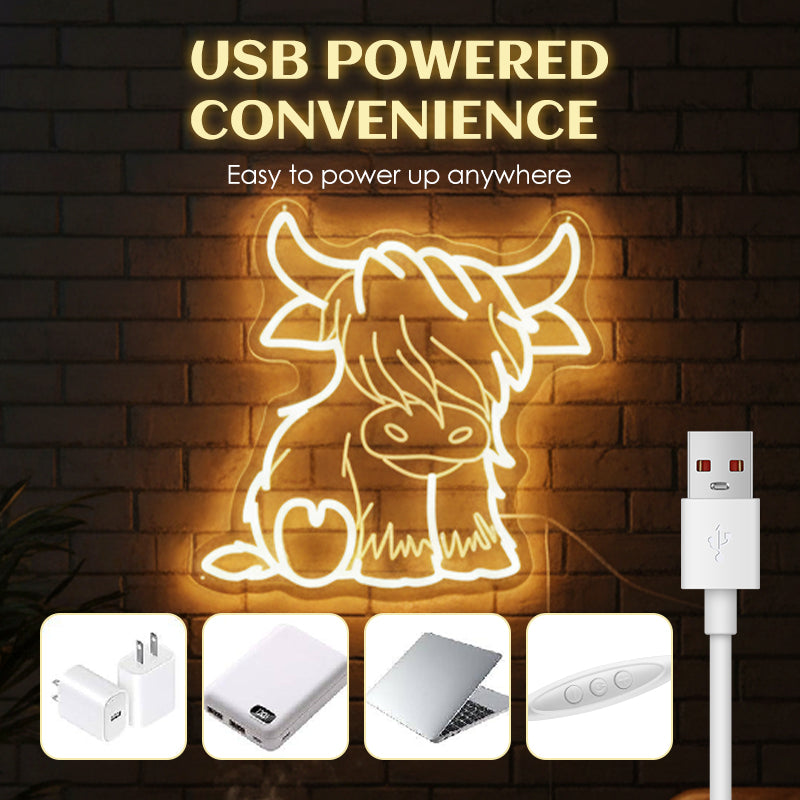 Highland Cow Neon Sign for Wall Decoration