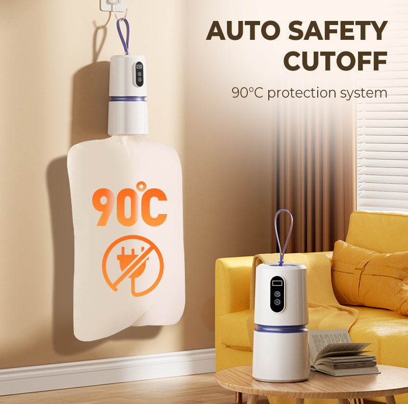 AUTOMATIC SAFETY PROTECTION: Built-in high-temperature sensor automatically shuts off the device when temperatures exceed 90°C. Flame-retardant vent materials and a heat-resistant drying bag provide extra protection against overheating for completely worry-free operation.