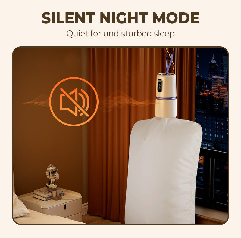 WHISPER-QUIET NIGHT MODE: Specially engineered low-noise operation ensures peaceful drying even during nighttime hours. The virtually silent performance makes it perfect for bedrooms, dorms, or any noise-sensitive environment.