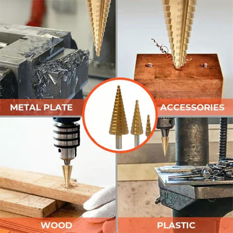SHARP PAGODA-SHAPE: This set features a sharp pagoda-shaped design, allowing for efficient drilling without slippage. The stepped design ensures smooth and precise drilling of concentric holes, making it easier to achieve professional results.