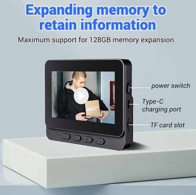 Wireless doorbell camera: 1080P, 170° angle, 4.3-inch screen, IPX65 outdoor waterproof, night vision